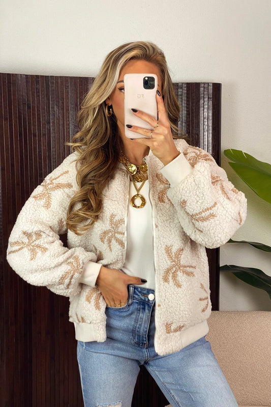 Palmbomen teddy jacket - Beige