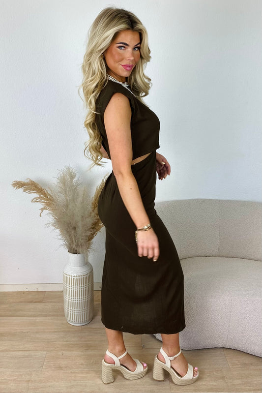 Cut-out jurk met split - Bruin